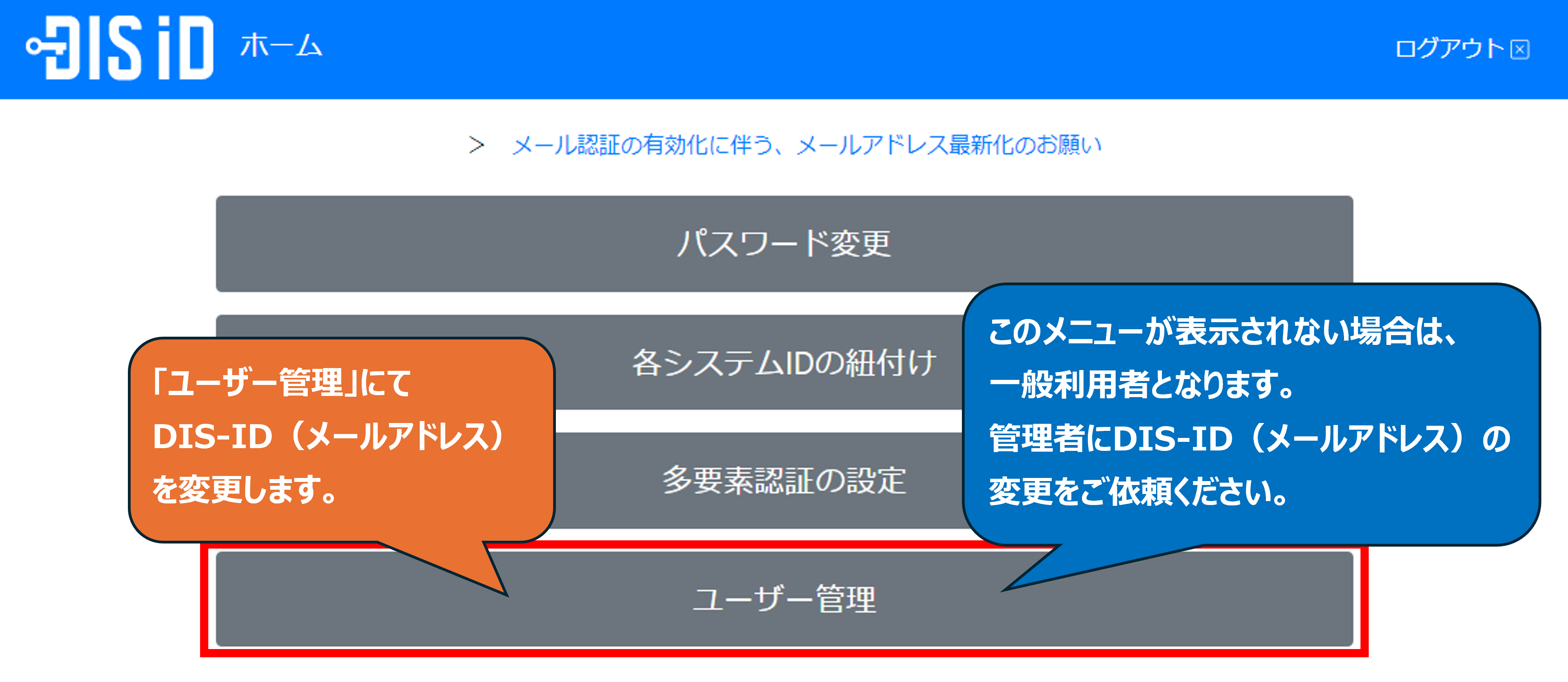 1.DIS-IDポータルにログインして、「ユーザー管理」にアクセスします