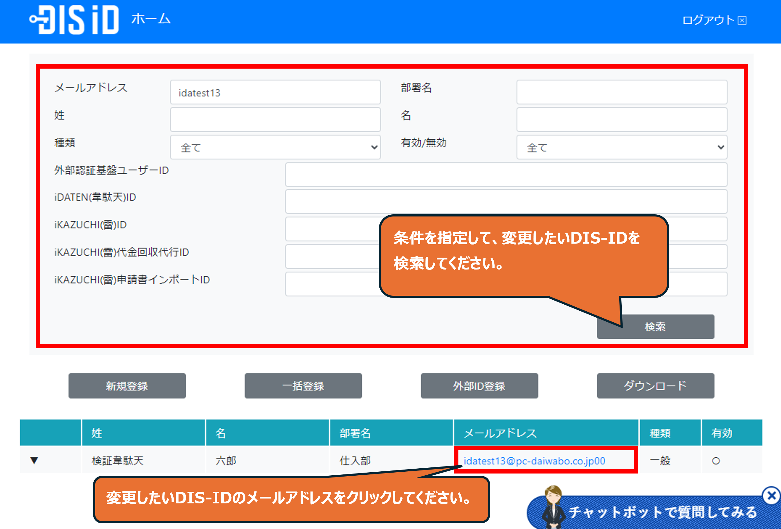 ※同じ会社内の一般利用者のDIS-IDに対しても変更可能です。