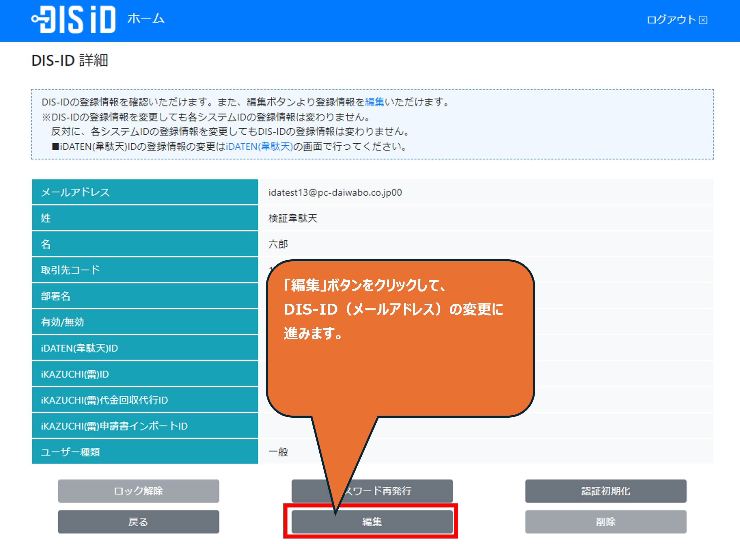 管理者の方は、ご自身でDIS-IDの登録を変更することが可能です。