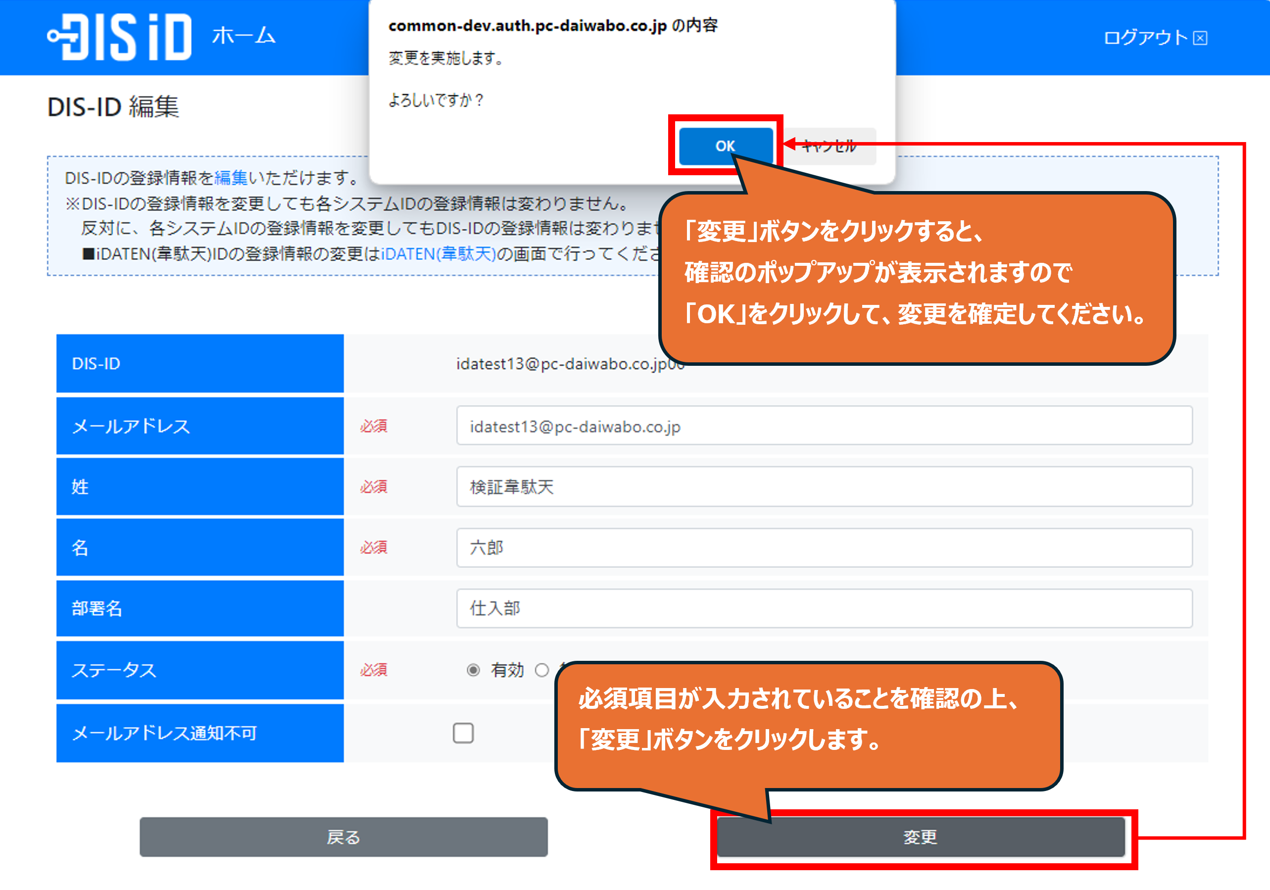 (DIS-IDの管理者として登録されている方のみが変更可能です)