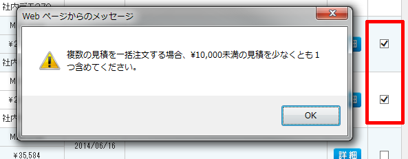 ※1万円未満の見積が1件も含まれない場合は、まとめて一括注文することはできません。