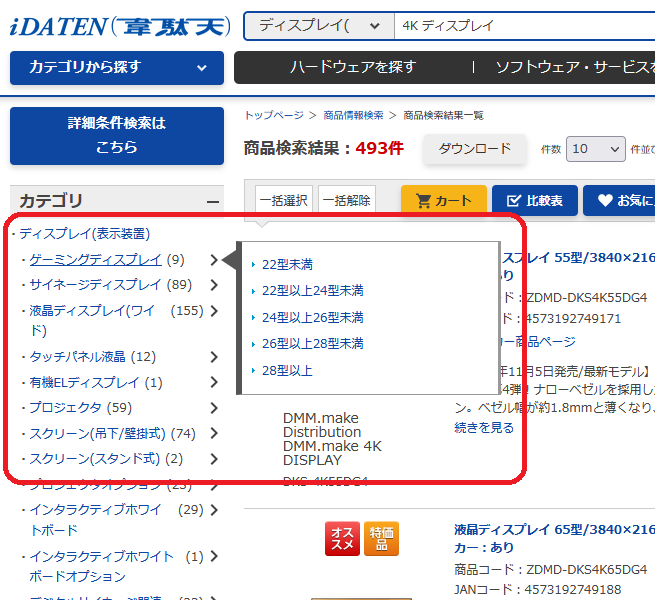 ※スペック条件選択で絞り込むを行う場合は、事前にカテゴリを選択して絞り込む必要があります。