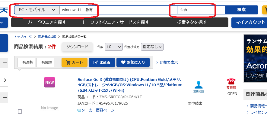 - 検索した商品よりも新しい後継機種の情報を調べることはできますか? [商品検索結果]