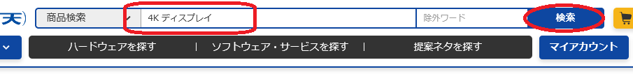 1・画面上部の入力欄に、検索キーワード(商品名・メーカー名・型番・JANコードなど)を入力してから、検索ボタンをクリックします。