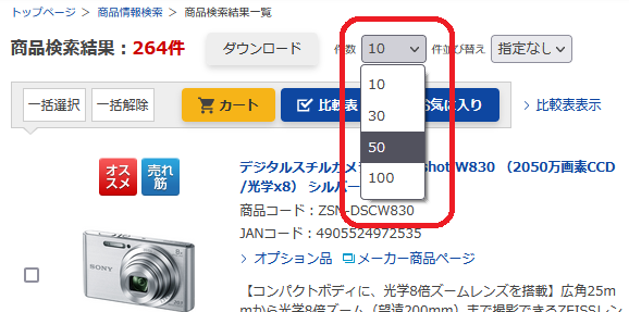 複数の商品を比較表示する場合に、スペック比較表機能とあわせてご利用ください。