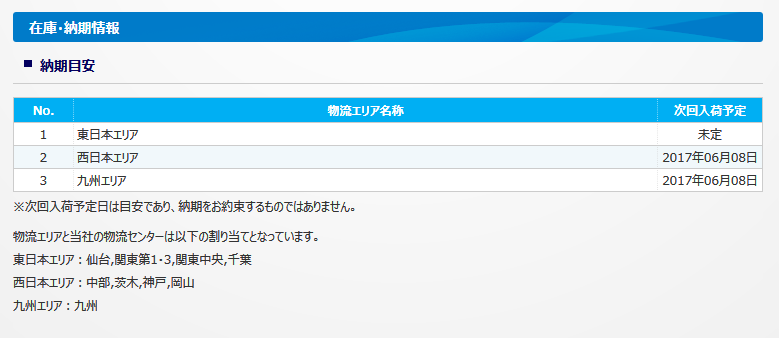 ※一部の在庫管理商品では、次回の弊社物流センターへの入荷予定日が表示されます。