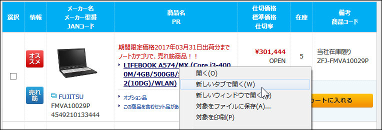 ※商品名のリンクをクリックする際に、新しいタブやウインドウで開くこともできます。