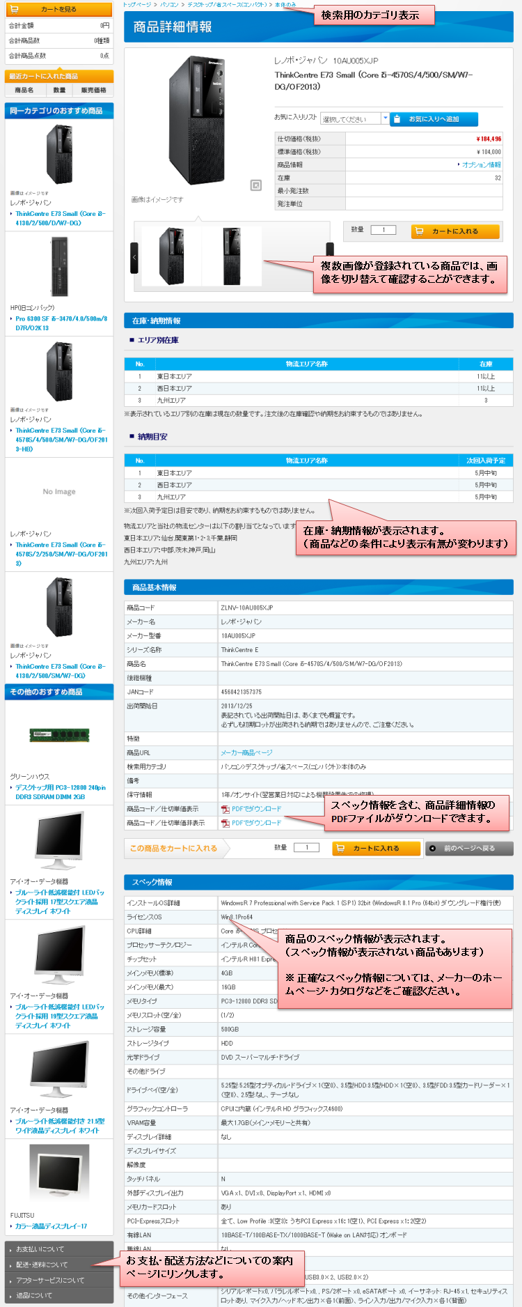 - 商品詳細に次回入荷予定が表示される商品と、表示されない商品がある。 [商品検索結果・画面表示・商品情報]