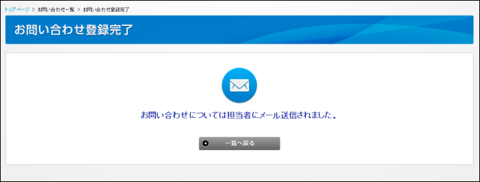 1・営業担当者やコールセンターより、お問い合わせフォームに対する回答があった場合は、お問い合わせ者のIDに登録されているメールアドレス宛てにメールが送信されます。
