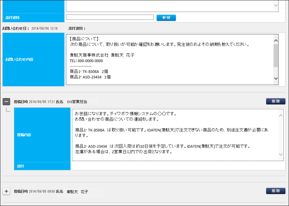 同じ画面から、折り返し追加で連絡を行う事が可能です。