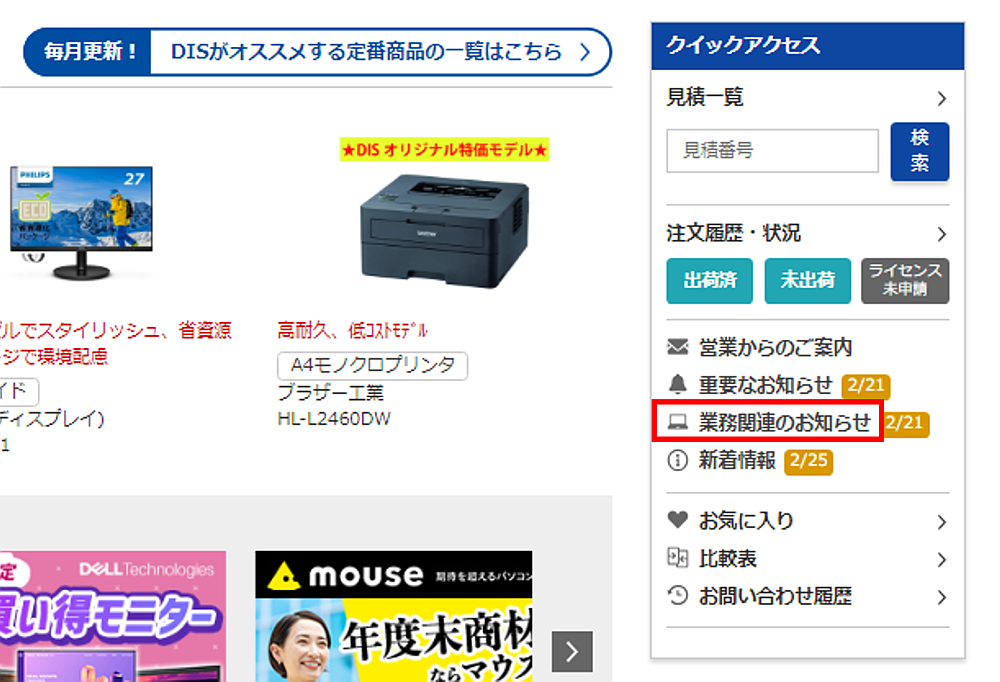 ・上部の「ヘルプ/問い合わせ」ボタンの中のリンクや、メニューからアクセスする場合