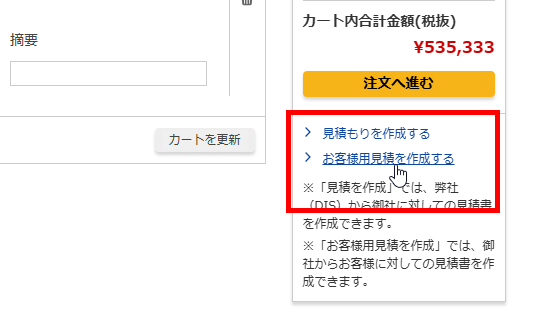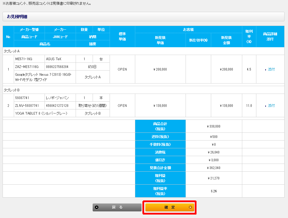 ・お客様コメント(任意:全角50文字以内)…お客様用見積詳細画面にのみ表示されます。見積書には表示されません。