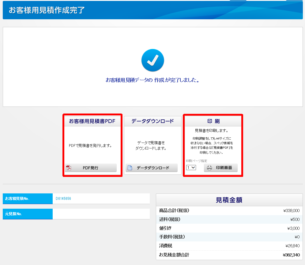 7・「お客様用見積データの作成が完了しました。」と表示されれば、お客様用見積の作成が完了です。