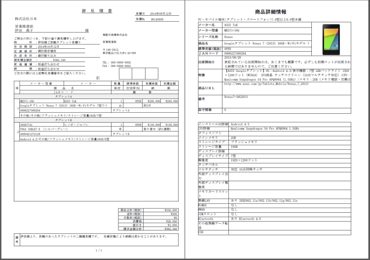 ※見積書はエンドユーザーに提出できるように、原則としてDISやiDATEN(韋駄天)の名前は表示されませんが、商品名やスペック情報に、意図しない情報が含まれていることもありえるので、必ず事前にご確認ください。