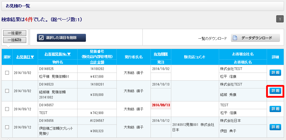 iDATEN(韋駄天)Plusを契約していてショップサイトで作成された見積は、「利用者のみ」か「全て」で検索してください。