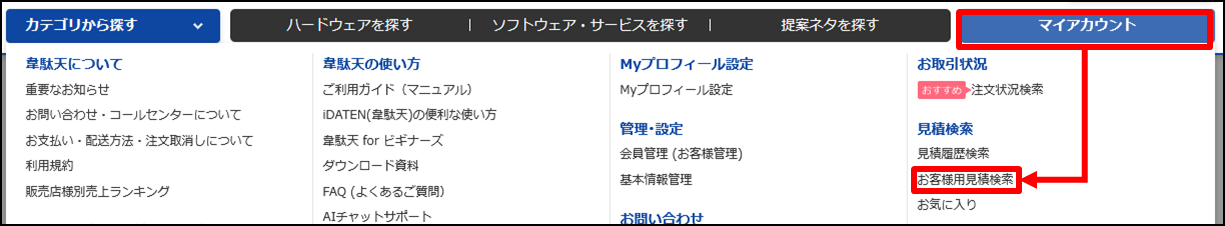 1・マイアカウントより「お客様用見積管理」を選択します。