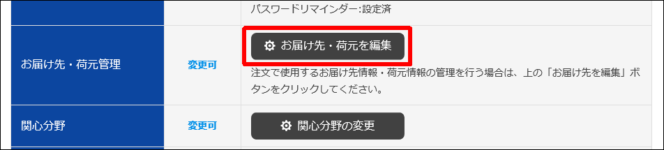 追加登録・修正・表示順変更・削除が必要な場合は、「お届け先・荷元を編集」で管理を行ってください。