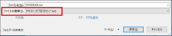 4・編集が終わったら、タブ区切りのテキストファイル(TSV)として保存します。
