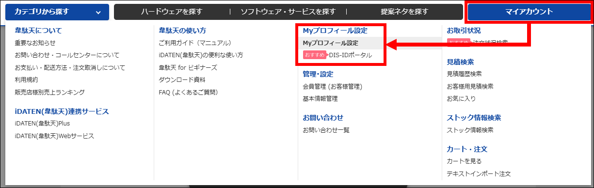 Myプロフィール設定では、韋駄天IDに登録されている情報の確認と変更ができます。