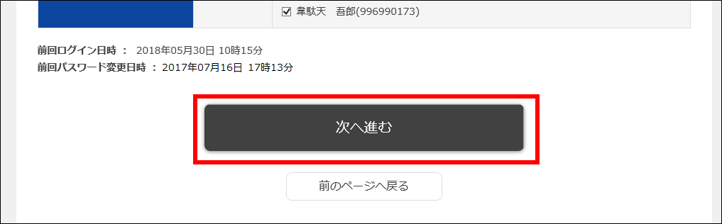 3・項目の内容を変更したら、「次へ進む」ボタンをクリックします。