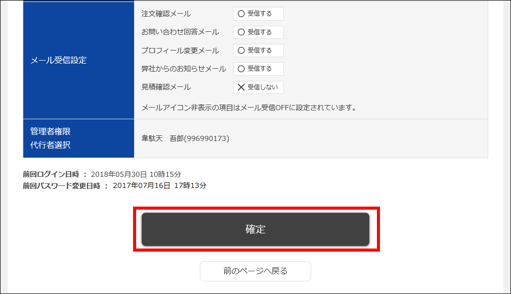 内容を確認して問題がなければ、画面下部に表示されている「確定」ボタンをクリックします。