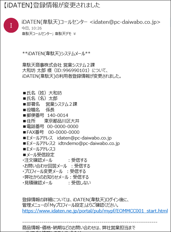 ・件名:【iDATEN】登録情報が変更されました