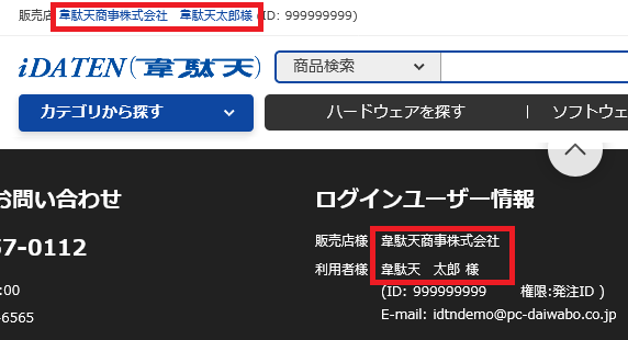 画面の最上部と、下部にはログイン中の利用者情報が表示されます。