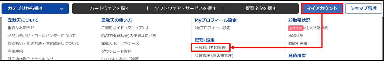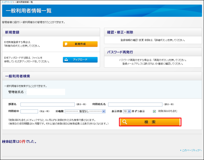 1・管理メニューにある「一般利用者ID管理」をクリックします。(管理者IDでログインしている場合のみ表示されます)