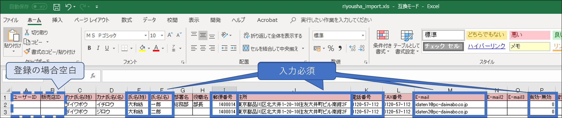 【一括登録用インポートファイルの作成方法】