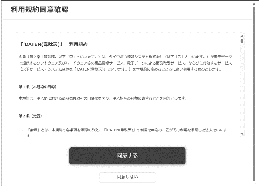 利用規約をご確認いただき、内容に問題なければ「同意する」ボタンをクリックしてください。