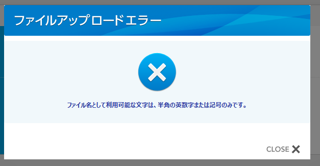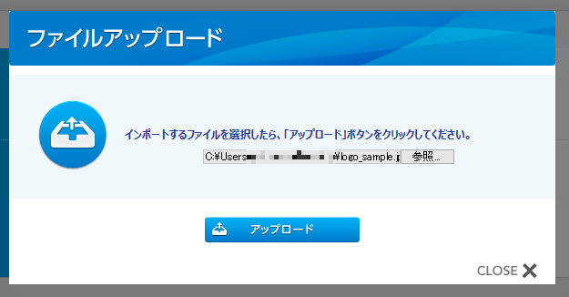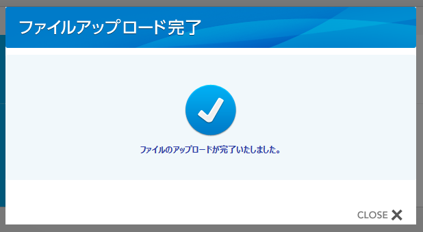 6・画像ファイルのアップロードが成功すると完了画面が表示されます。右下の「CLOSE」をクリックします。