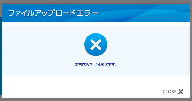 画像のファイル名や形式に問題がある場合は、下図のようにエラー画面が表示されます。