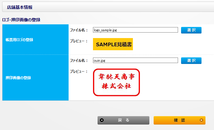 ・帳票用ロゴ画像サイズ:縦40px程度、横125px程度