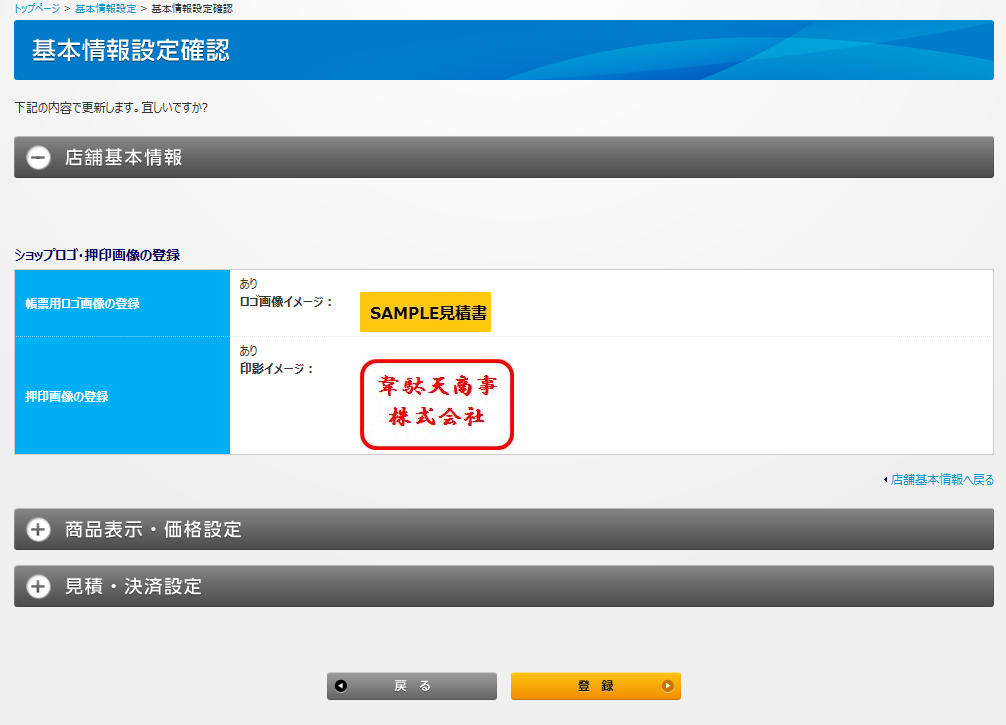8・基本情報設定確認の画面が表示されます。問題がなければ「登録」ボタンをクリックします。