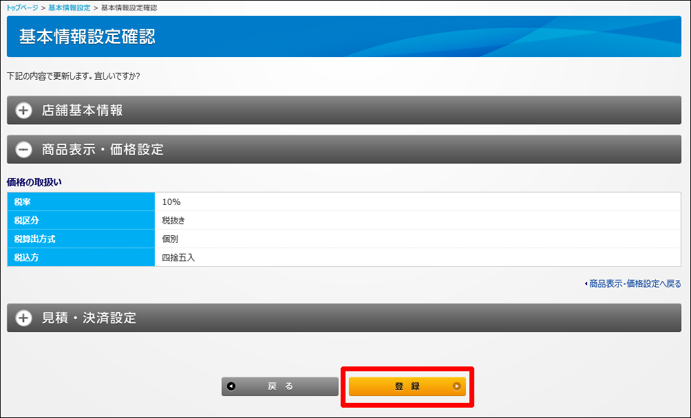 4・確認ボタンをクリックすると確認画面が表示されます。設定内容を確認してから「登録」ボタンをクリックします。
