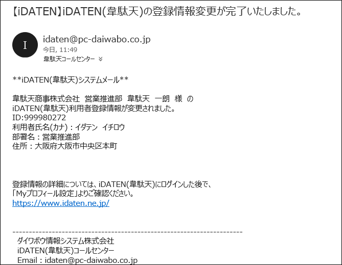 件名:【iDATEN】iDATEN(韋駄天)の利用者登録変更が完了いたしました。