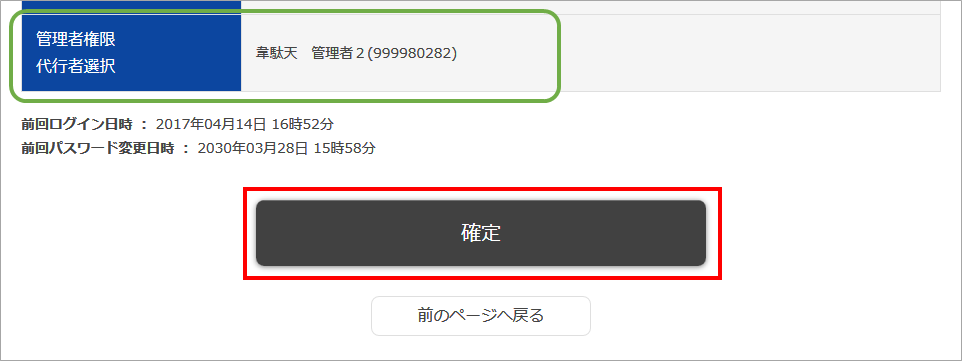 4・変更内容確認画面が表示されます。内容に誤りがなければ、「確定」ボタンをクリックします。