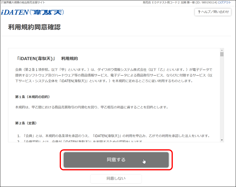 ※「同意しない」を選択した場合は、韋駄天をご利用いただけません。