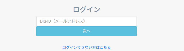 DIS-ID(メールアドレス)を入力して、「次へ」ボタンをクリックします。