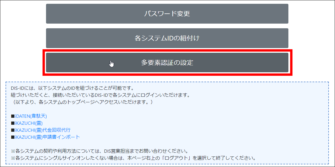 ログアウトするとDIS-IDポータルのログイン画面の表示に変わります。