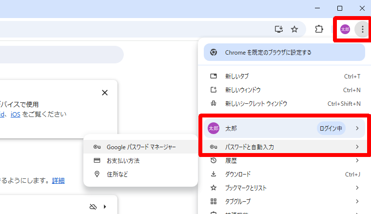 ここでは、Chromeブラウザの「Googleパスワードマネージャー」を使う場合の手順を例としてご案内します。
