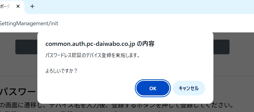 デバイス登録の確認ダイアログが表示されます。