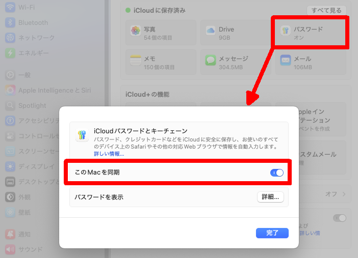 これで、iCloudキーチェンのパスキーの保存設定は完了です。