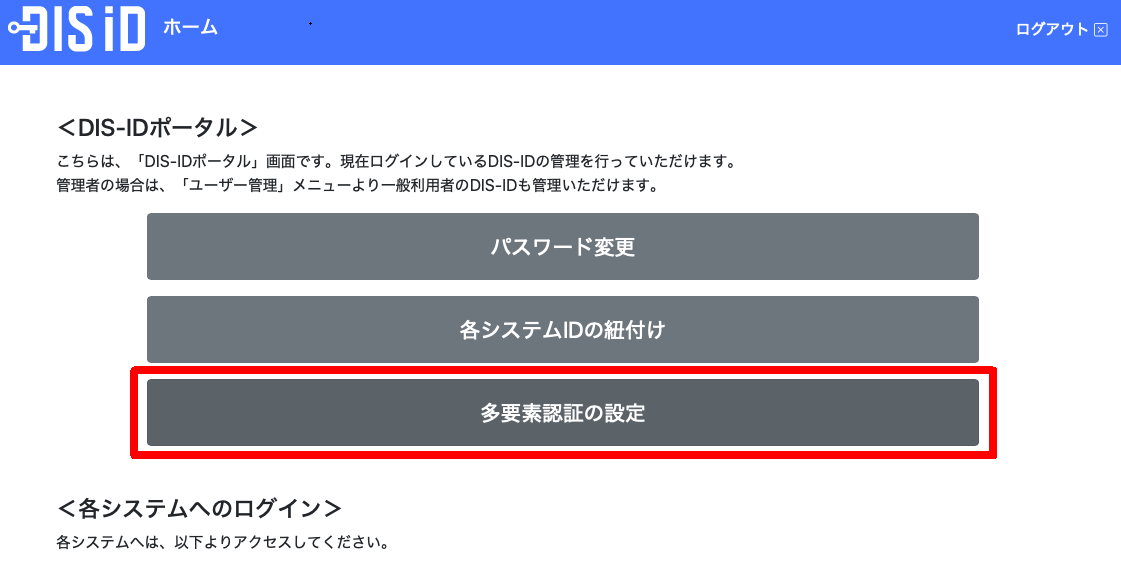 ログアウトするとDIS-IDポータルのログイン画面の表示に変わります。