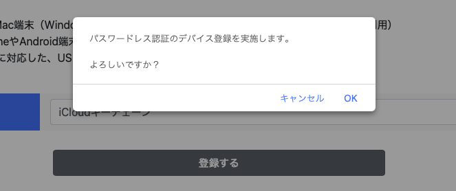 画面下部より、パスワードレス認証で利用するデバイスを登録します。