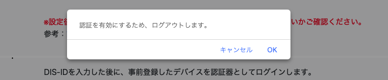 認証が完了すると、DIS-IDのログインが同時に実行されます。