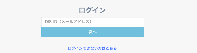 DIS-ID(メールアドレス)を入力して、「次へ」ボタンをクリックします。