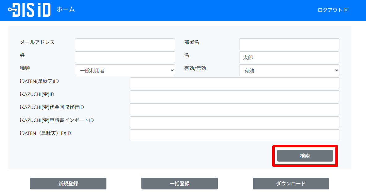 2.検索条件を入力し、「検索」ボタンをクリックします。