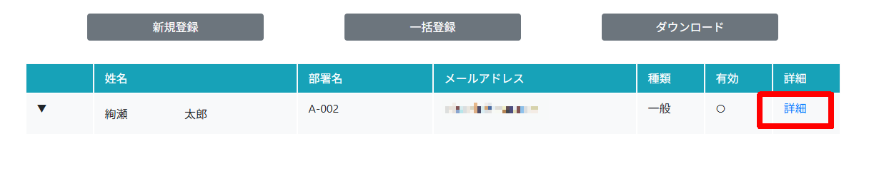 3.画面下部に検索結果が表示されます。 編集するユーザーの「詳細」をクリックします。