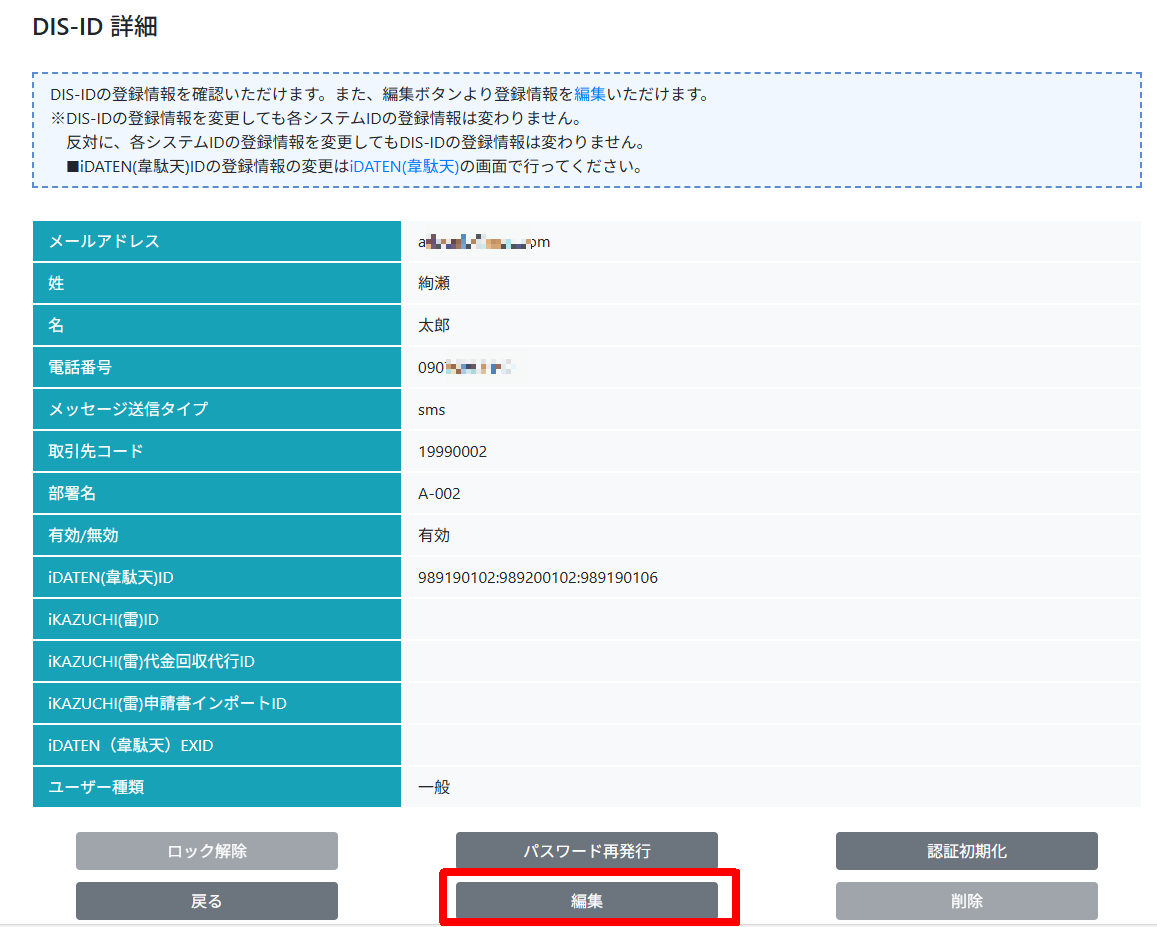 ※DIS-IDの管理者として登録されている方のみ編集が可能です。